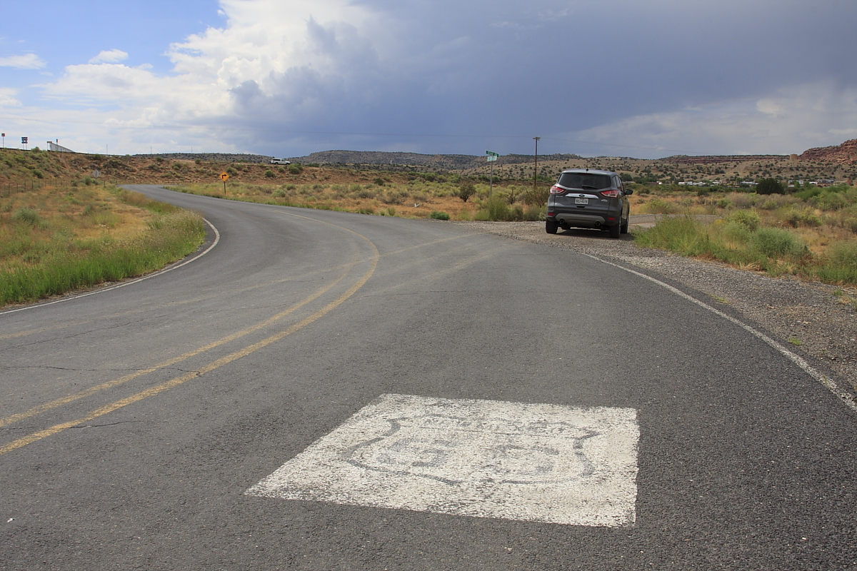 Von Albuquerque fahren wir weiter nach Gallup, Stationen am Weg sind Budville, Grants und Thoreau mit Überbleibseln der Route 66. Vor Gallup überqueren wir auch die Continental Divide, die den nordamerikanischen Kontinent in zwei Hälften teilt: Westlich davon fließt Regen in den Pazifik, östlich davon in den Atlantik. Für uns ist das eigentlich recht beeindruckend, aber nur eine bescheidene Hinweistafel am Straßenrand deutet auf den Punkt hin.